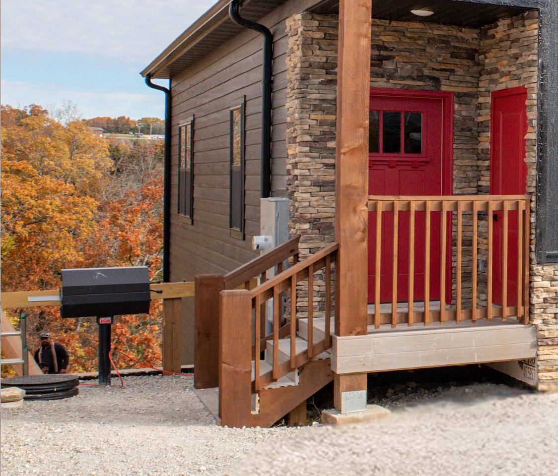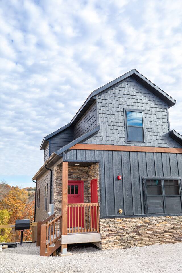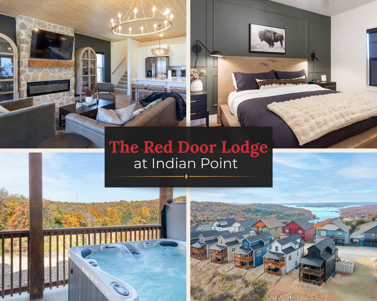 The brand-new Red Door Lodge is a 4-bedroom home where modern comfort meets Ozark charm — and yes, the door really is red. It has EVERYTHING you need for a great family or group vacation in Indian Point of Branson, MO. ✔ 2 King + 2 Queen + 1 Full + 3 twin beds ✔ 1 Mile to Silver Dollar City ✔ Game Room with TV and Shuffleboard ✔ PS 5, Board Games, Kids Books ✔ 2 Decks (7-Seat HotTub, Outdoor Dining) ✔ Fully Stocked Kitchen ✔ Pack n Play and High Chair ✔ Pools ✔ EV Charger ✔ Outdoor Grill