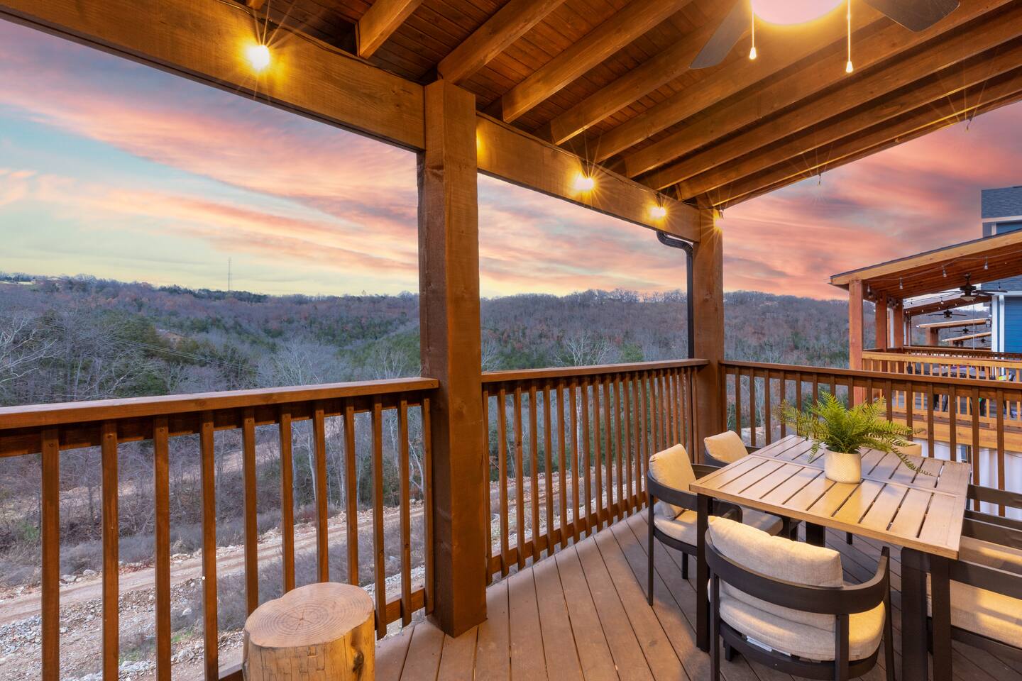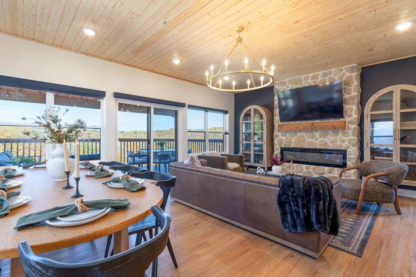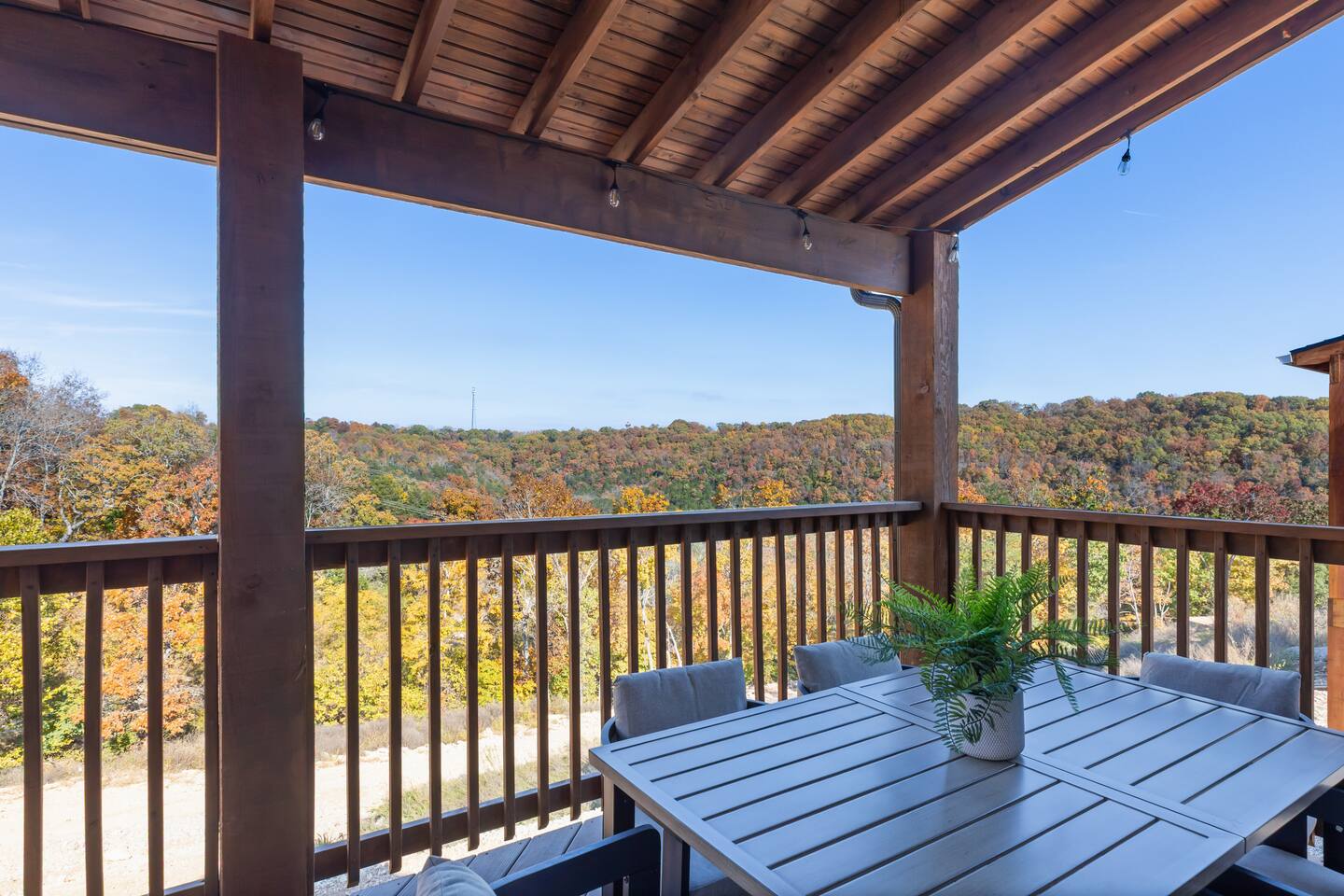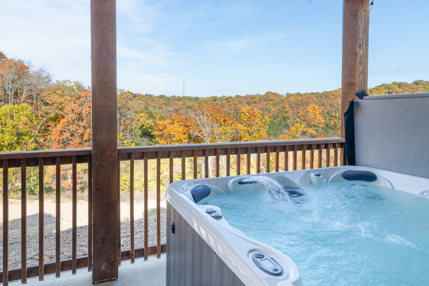 MAIN LEVEL: •BEDROOM #1: King bed with en-suite bathroom (shower only) •KITCHEN: Fully stocked, combo Keurig/drip coffee maker, high chair •DINING: Spacious table with ample seating for 8 •LIVING ROOM: Comfortable sofa, two cozy chairs, electric fireplace •DECK #1: Outdoor Dining, Lounge Seating, and Ozark Mountain views UPPER LEVEL: •BEDROOM #2: King bed •BEDROOM #3: Bunk Room with 2 Twin Bunk, 1 Double bed, 1 Twin trundle bed, Kids Reading Nook with starry lights and kid's books LOWER LEVEL: •BEDROOM #4: King bed and pack n' play •GAME ROOM: * Quality Shuffleboard * Wall Games - Checkers * 65" Smart TV, Playstation 5 with Lego Horizon Adventures, Madden 26, Astrobot and more * Board games •DECK #2: Private Hot Tub and lounge chairs •LAUNDRY ROOM: Washer/Dryer, Detergent, Iron Other than the already mentioned amenities, our home is also equipped with: ✔ High-Speed Wi-Fi ✔ Self Check-In (Smartlock) ✔ Air Conditioning ✔ Heating ✔ Free Parking Located in the Crowne View Resorts, guests can enjoy numerous Community Amenities, including: ✔ Heated Indoor Community Pool (Open All Year) ✔ Outdoor Pool with Water Slide + Kiddie Pool (Open May 25-Sept 30), Hot Tub ✔ Fire Pit ✔ Outdoor Playground