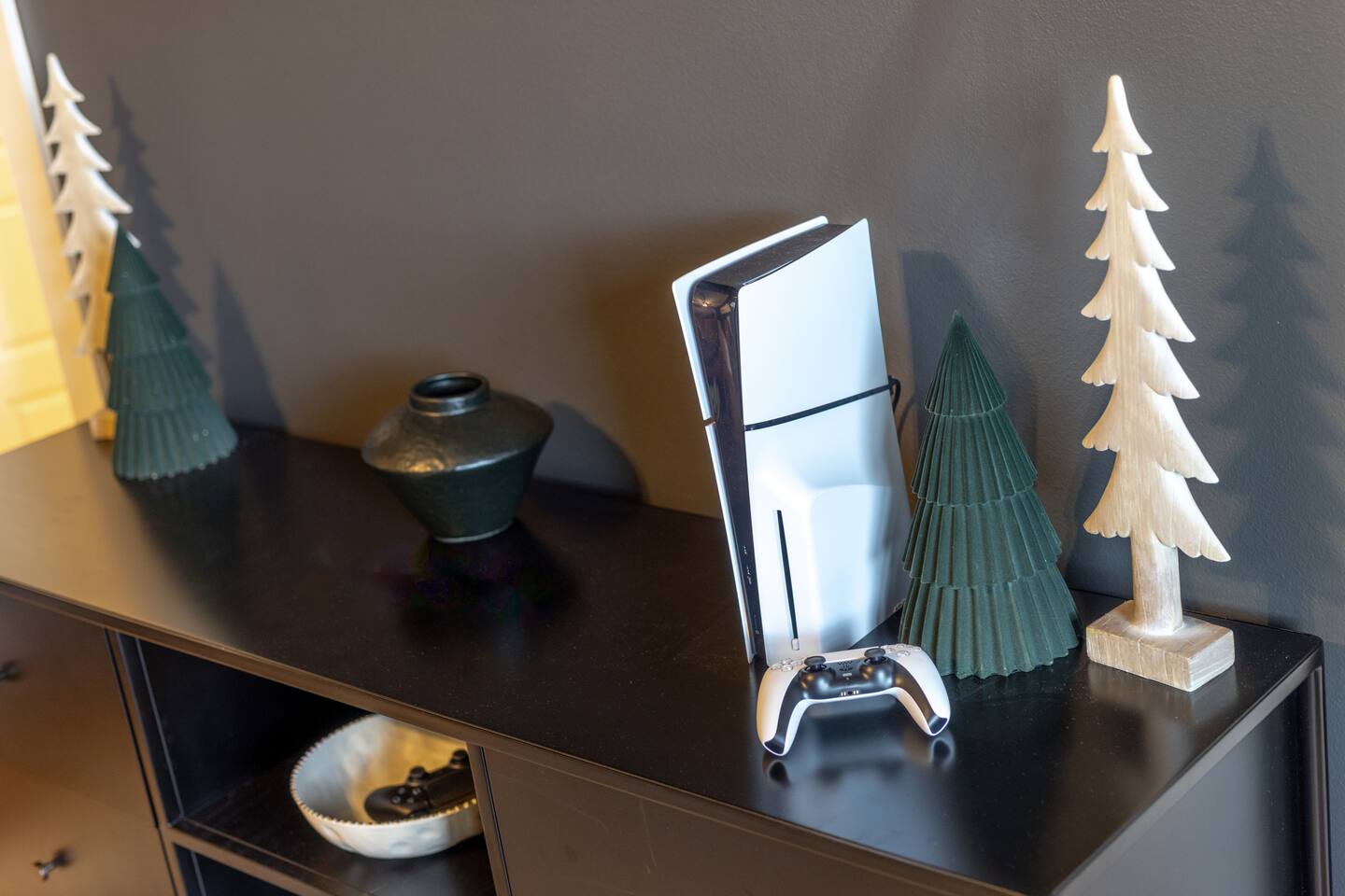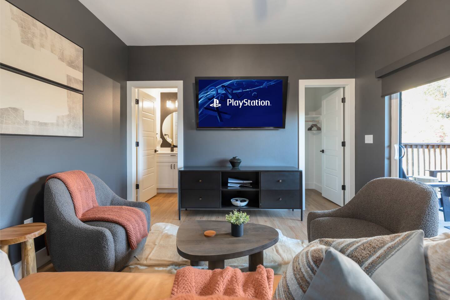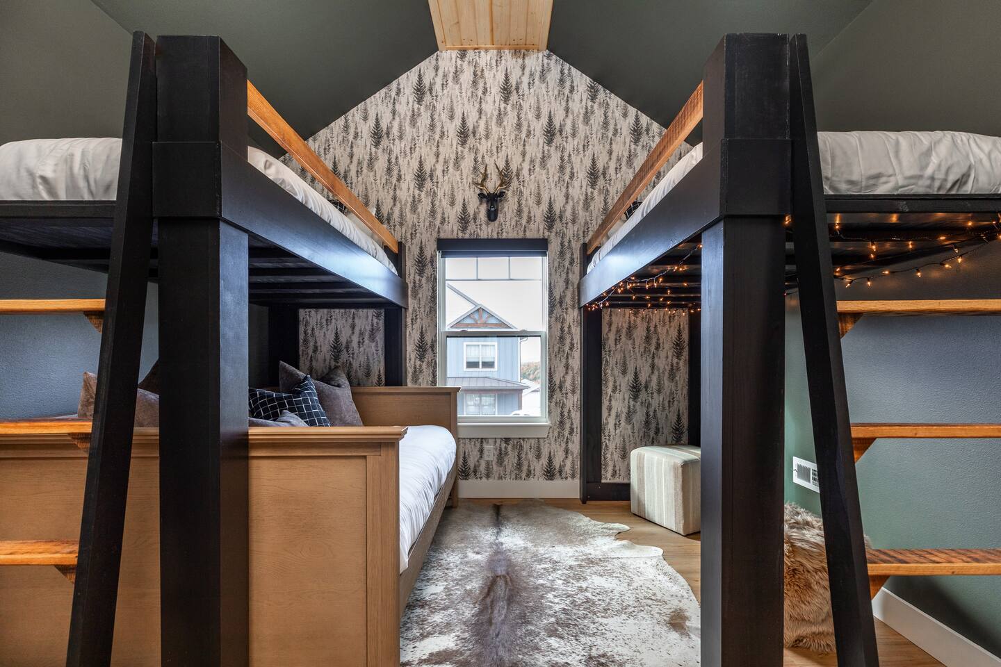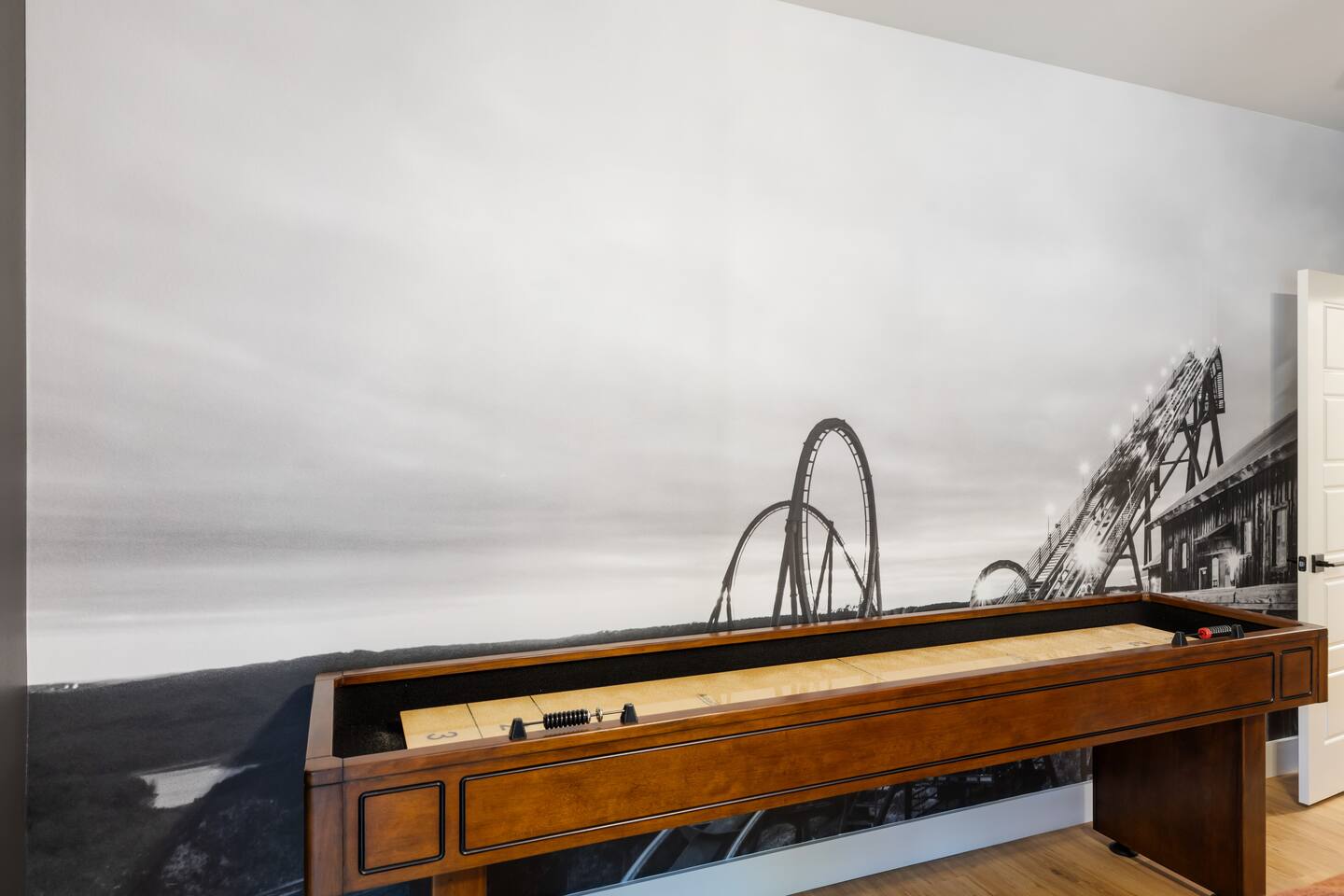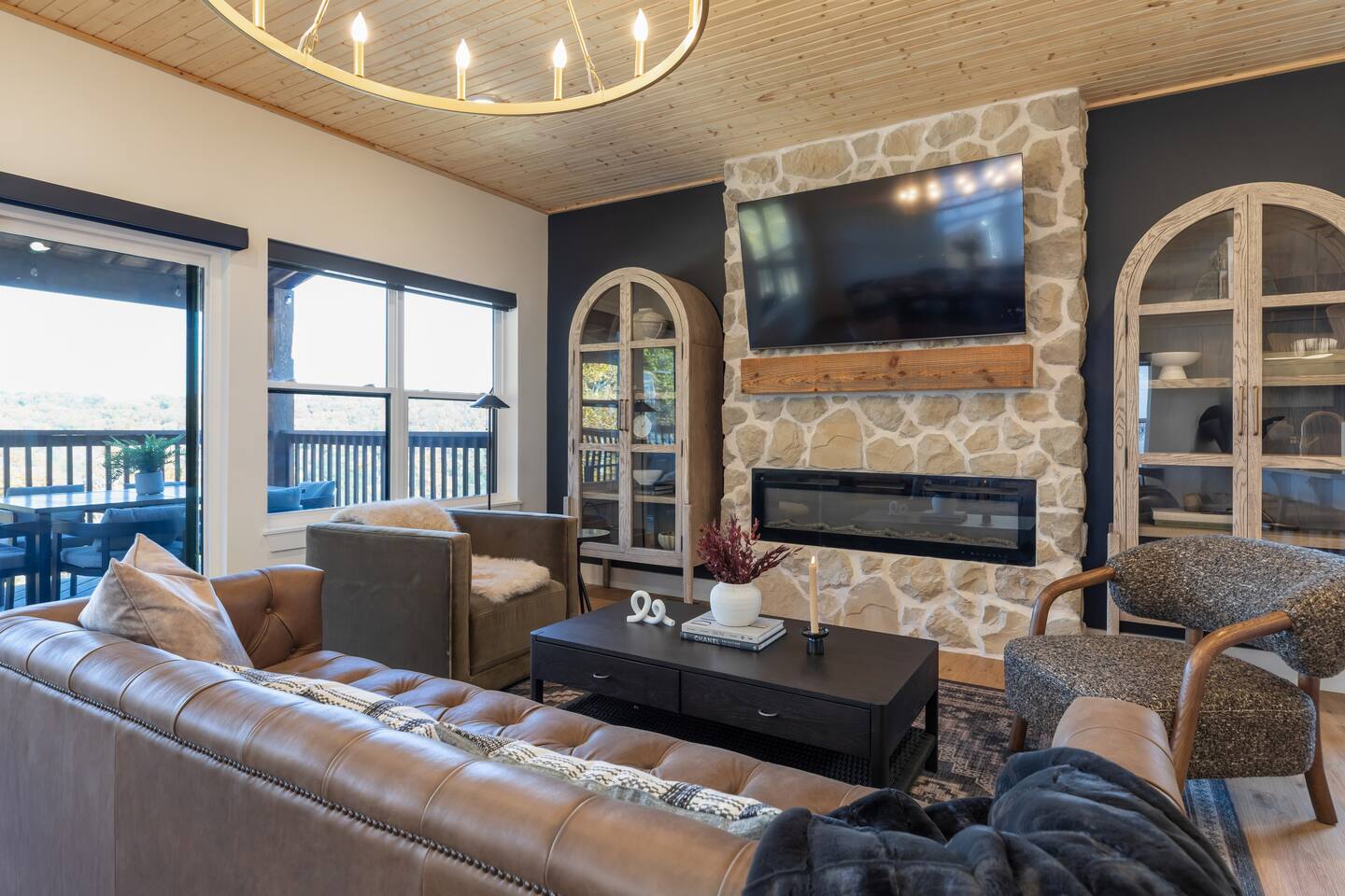 MAIN LEVEL: •BEDROOM #1: King bed with en-suite bathroom (shower only) •KITCHEN: Fully stocked, combo Keurig/drip coffee maker, high chair •DINING: Spacious table with ample seating for 8 •LIVING ROOM: Comfortable sofa, two cozy chairs, electric fireplace •DECK #1: Outdoor Dining, Lounge Seating, and Ozark Mountain views UPPER LEVEL: •BEDROOM #2: King bed •BEDROOM #3: Bunk Room with 2 Twin Bunk, 1 Double bed, 1 Twin trundle bed, Kids Reading Nook with starry lights and kid's books LOWER LEVEL: •BEDROOM #4: King bed and pack n' play •GAME ROOM: * Quality Shuffleboard * Wall Games - Checkers * 65" Smart TV, Playstation 5 with Lego Horizon Adventures, Madden 26, Astrobot and more * Board games •DECK #2: Private Hot Tub and lounge chairs •LAUNDRY ROOM: Washer/Dryer, Detergent, Iron Other than the already mentioned amenities, our home is also equipped with: ✔ High-Speed Wi-Fi ✔ Self Check-In (Smartlock) ✔ Air Conditioning ✔ Heating ✔ Free Parking Located in the Crowne View Resorts, guests can enjoy numerous Community Amenities, including: ✔ Heated Indoor Community Pool (Open All Year) ✔ Outdoor Pool with Water Slide + Kiddie Pool (Open May 25-Sept 30), Hot Tub ✔ Fire Pit ✔ Outdoor Playground